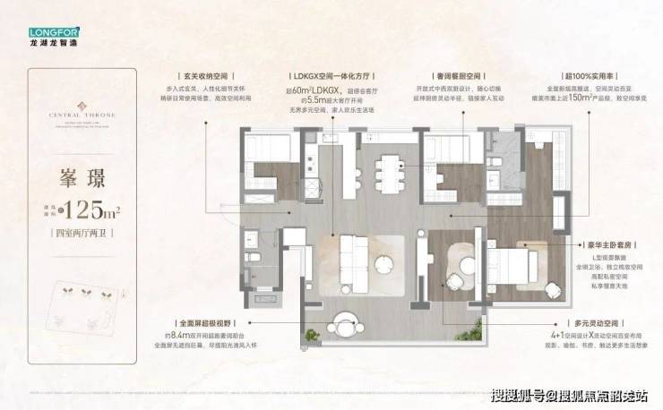 龙湖金地天峯:2024年开盘首开去化率85%,规划9栋高层住宅,主力户型90-129㎡。