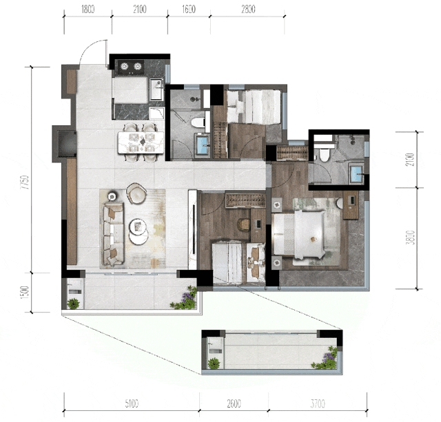 阳台是一个家庭与室外形成交互的连接点,功能早已超越晾晒衣物的单一属性,增加了休闲互动、花园造景、收纳储物等场景。这种变化反映出了现代家庭对宽敞阳台日益增长的需求。