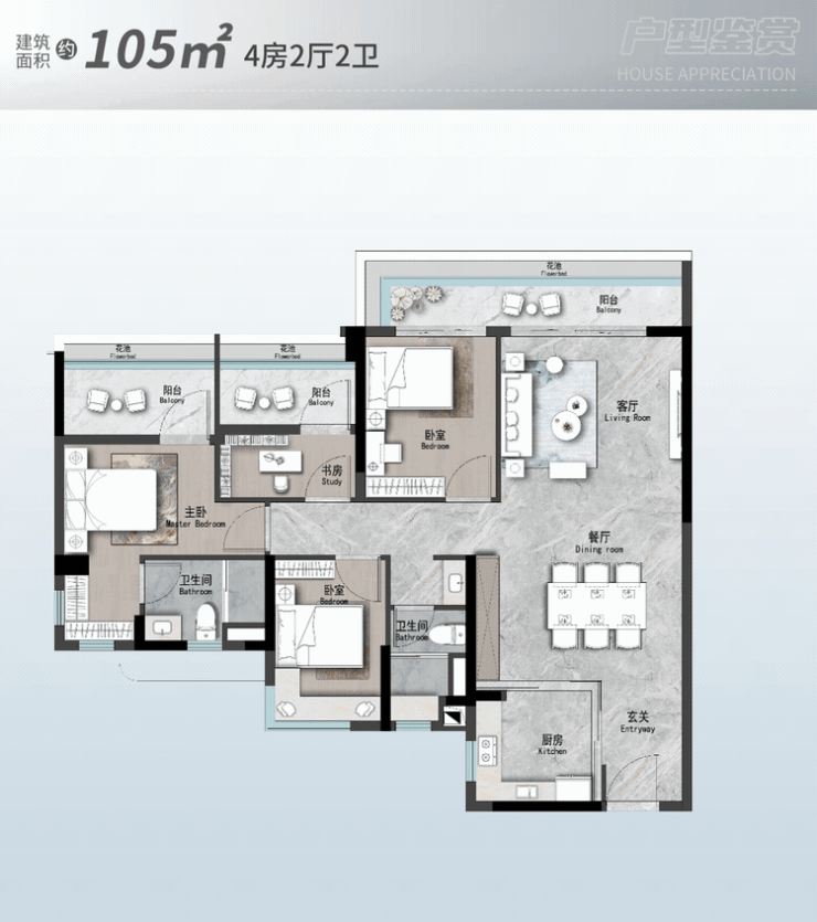 项目约45万m²大体量,涵盖住宅、主题园林、下沉式水景、幼儿园及九年一贯制学校、精品市场等