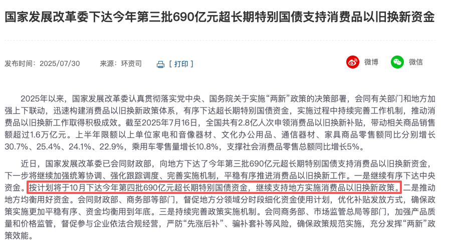 今年7月,国家发展改革委发文称,按计划将于10月下达第四批690亿元超长期特别国债资金,继续支持地方实施消费品以旧换新政策。“在这种情况下,地方‘以旧换新’补贴并不会在某个时间就集中用完,大部分地区的补贴政策会贯穿全年。”郎学红认为。