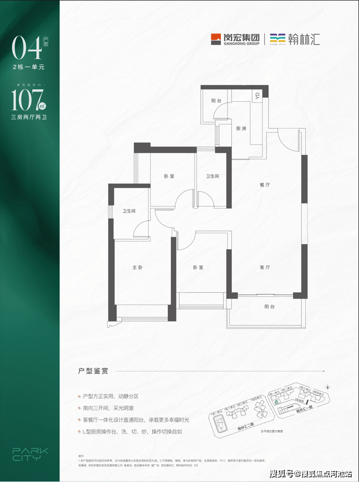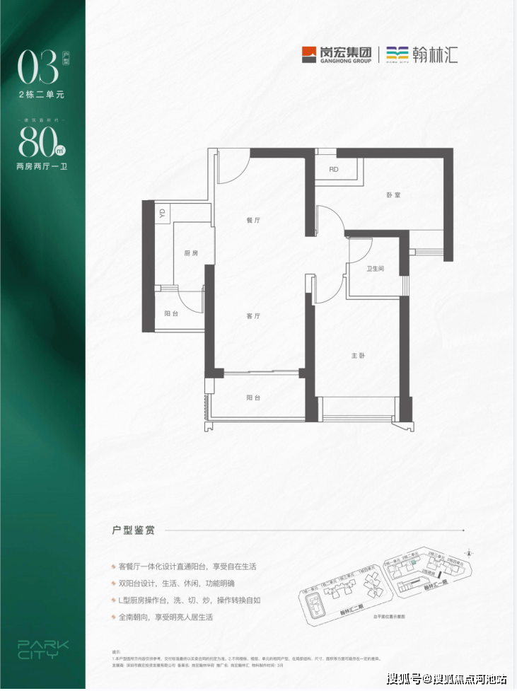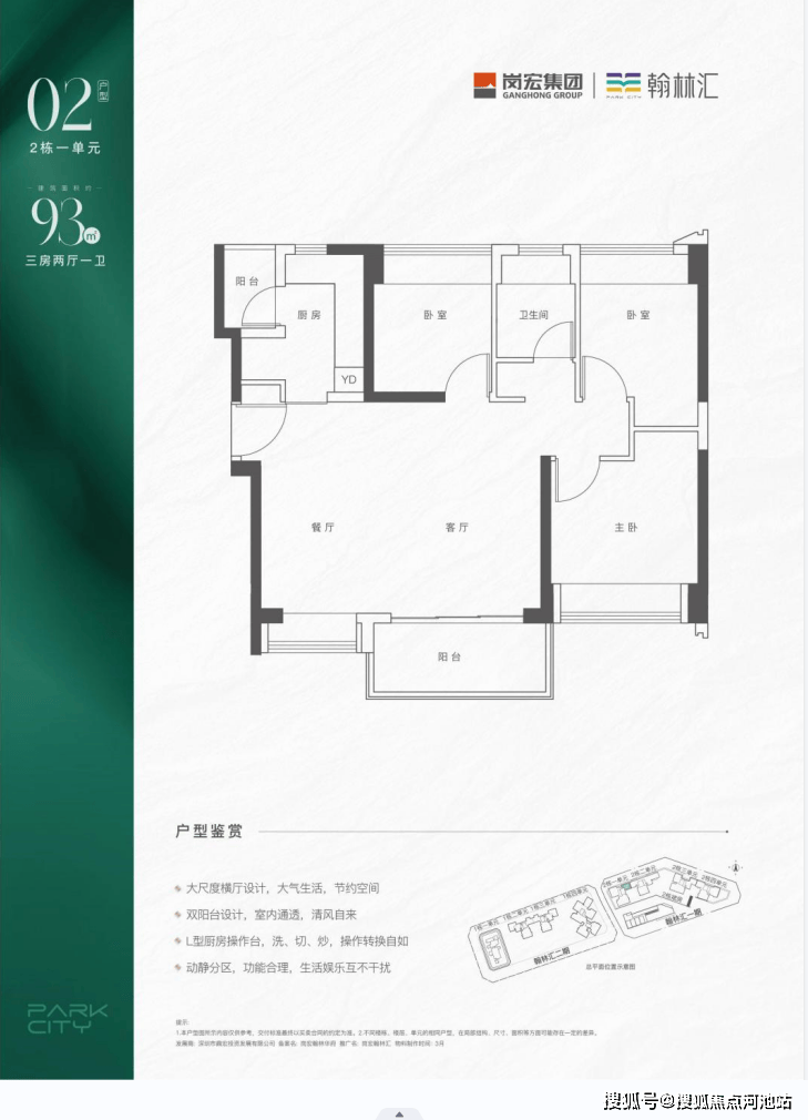 岗宏翰林汇项目总建面约47万㎡,分三期建设,包括住宅、写字楼等产品,并配建有幼儿园、9年制公办学校和约5万㎡商业中心。项目由01和02地块组成,首推02地块一期,由两栋46层高(3梯5户)超高层建筑和两栋32层高高层(2梯5户)建筑组成。建面约74-131㎡两到四房户型产品,主推两至三房为主。整个项目1640套住宅,车位1956个。