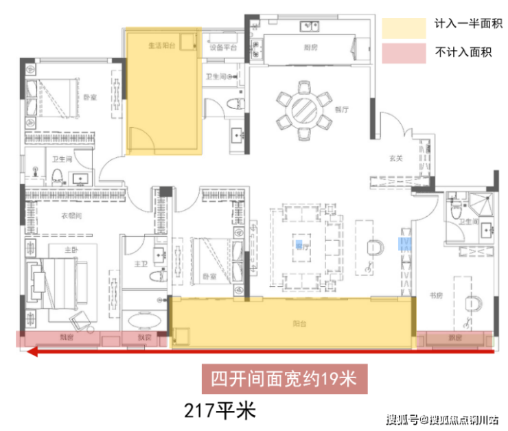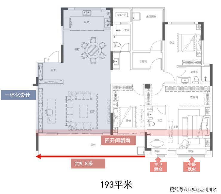景观阳台+生活阳台+飘窗的设计大大提升了 使用率,目测实际使用面积比很多220平的大平层还大。