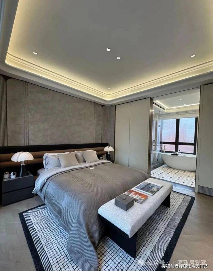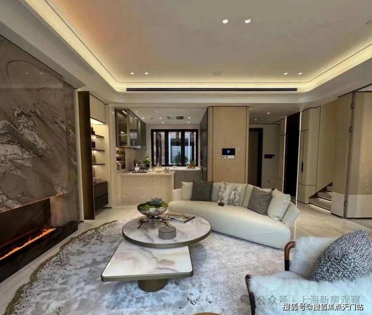 高定公区,重塑海派归家史诗;隐奢门庭:社区大门以古琦黑奢石手工锻造弧形幕墙,将珠宝镶嵌工艺融入建筑肌理;