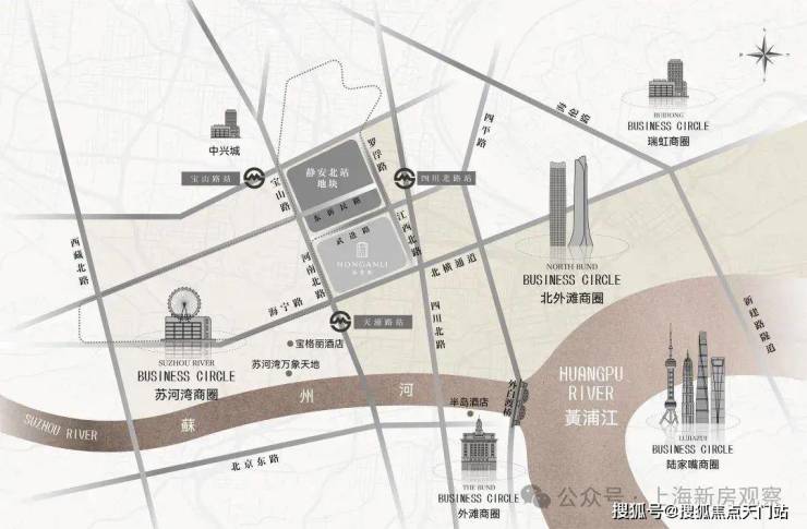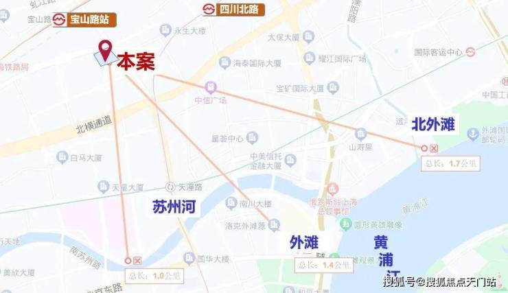 仅从图上看,该地块直线距 苏州河约1公里,直线距 外滩约1.4公里,直线距 北外滩约1.7公里,直线距 3/4号线宝山路站约300米,直线距 10号线四川北路站约560米,区位优势明显。