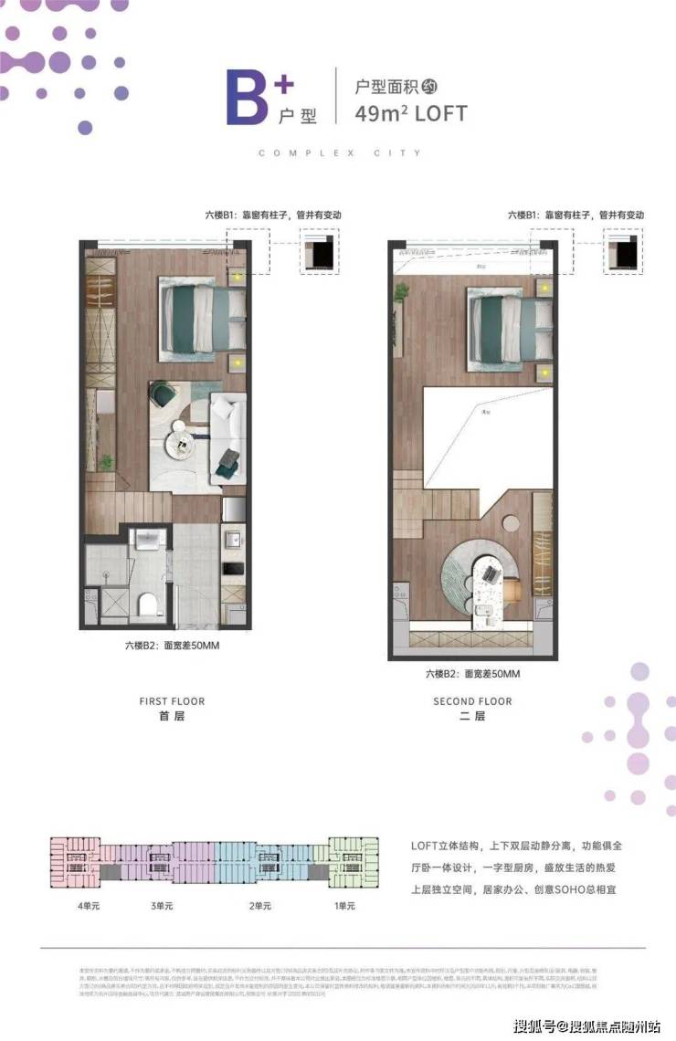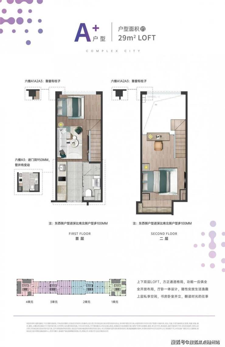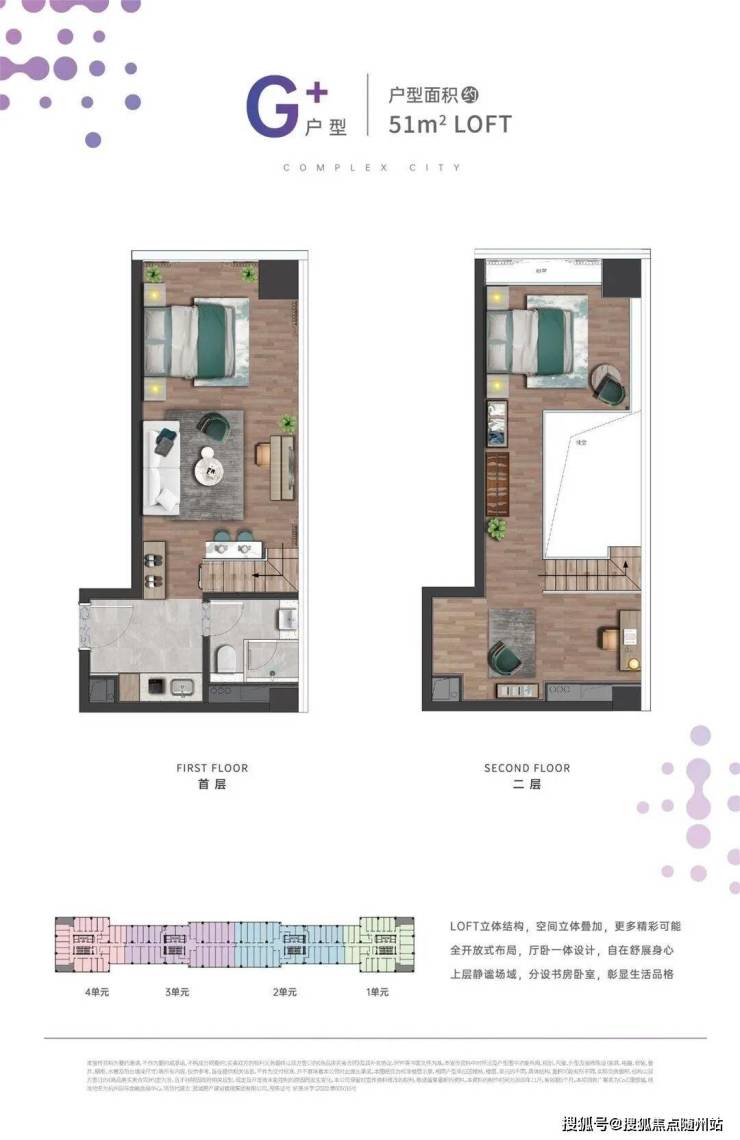 项目主打建面约29-51㎡的精装公寓,包括4.19米层高LOFT与3.3米层高平层两种产品类型。一层价格可享两层空间,部分户型可实现“楼上休憩、楼下办公”的跃层生活场景。