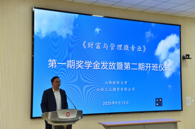2025年9月13日上午,山西三立期货有限公司(以下简称“三立期货”)与山西财经大学联合举办的微专业第一期奖学金发放暨第二期开班仪式典礼在山西财经大学举行。本次典礼由山西财经大学金融学院院长李静萍教授主持,三立期货副总经理史海兵、首席风险官魏春苓等相关人员及金融学院师生代表及微专业项目全体学员共同参与,标志着校企合作迈向更深层次、更广领域的新阶段。