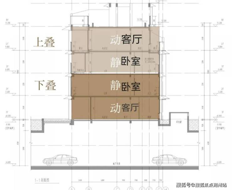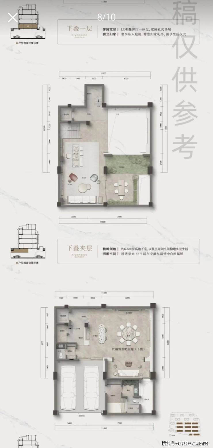 上叠户型,5楼有个露台,同时还有一个地下室空间,配有私家电梯,每一层都有电梯可到达。下叠,下叠也配有私家电梯。下面是叠墅