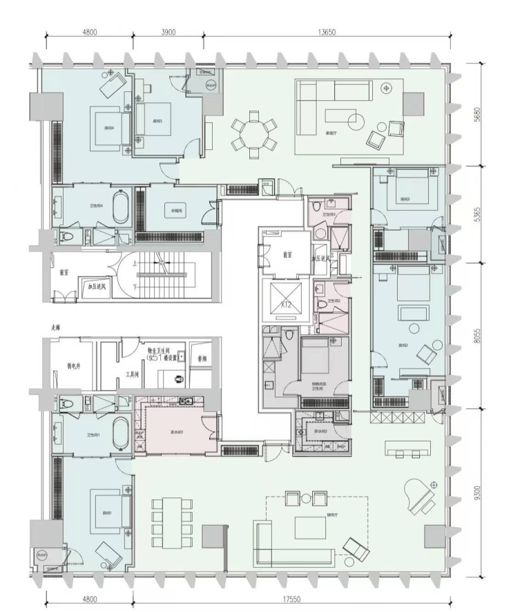 3、提供代租代管,2座五星级酒店24小时送餐服务,以及上门家宴、干洗服务。