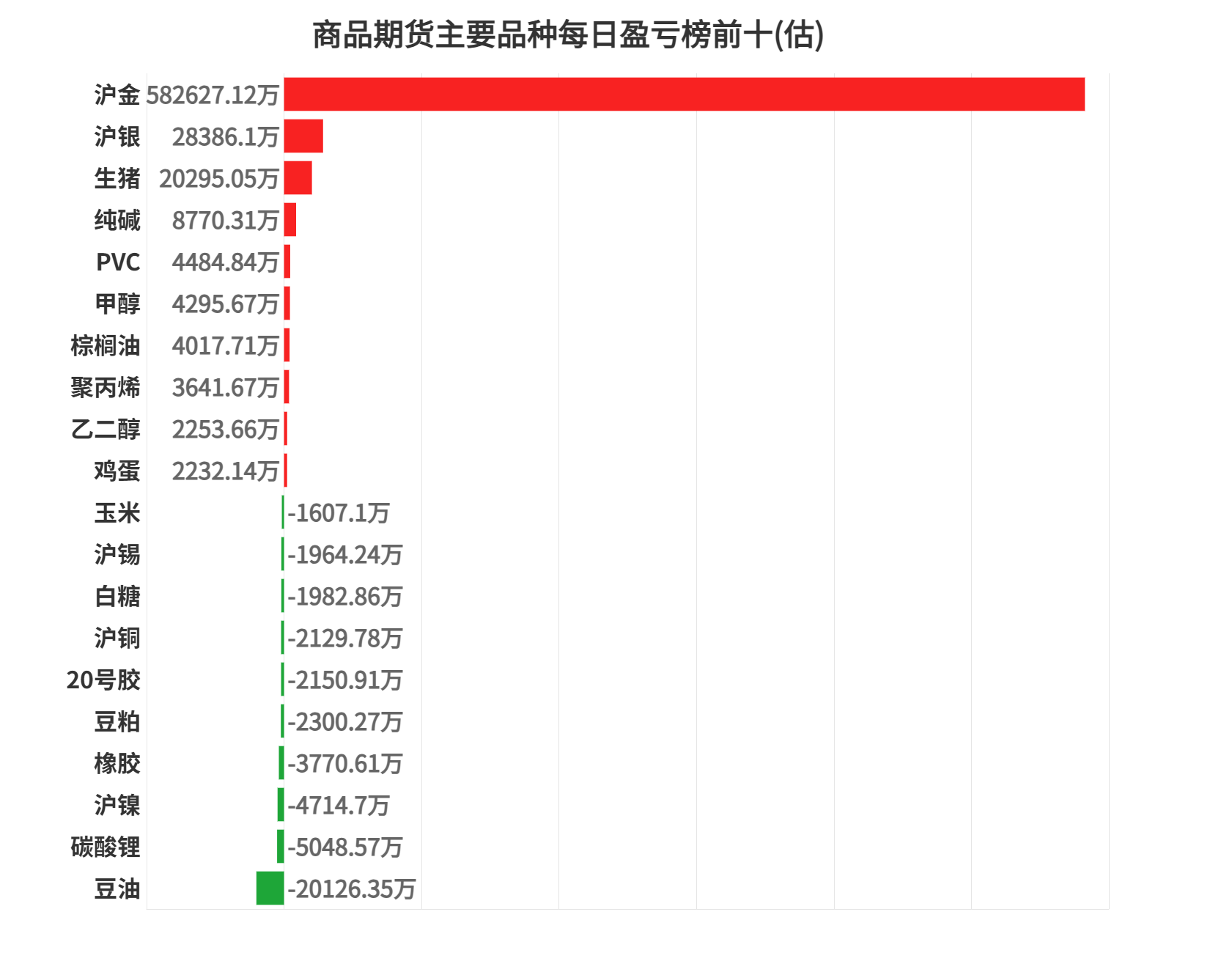 今日商品期货上榜机构席位中沪金盈利第一,为582627.12万元。