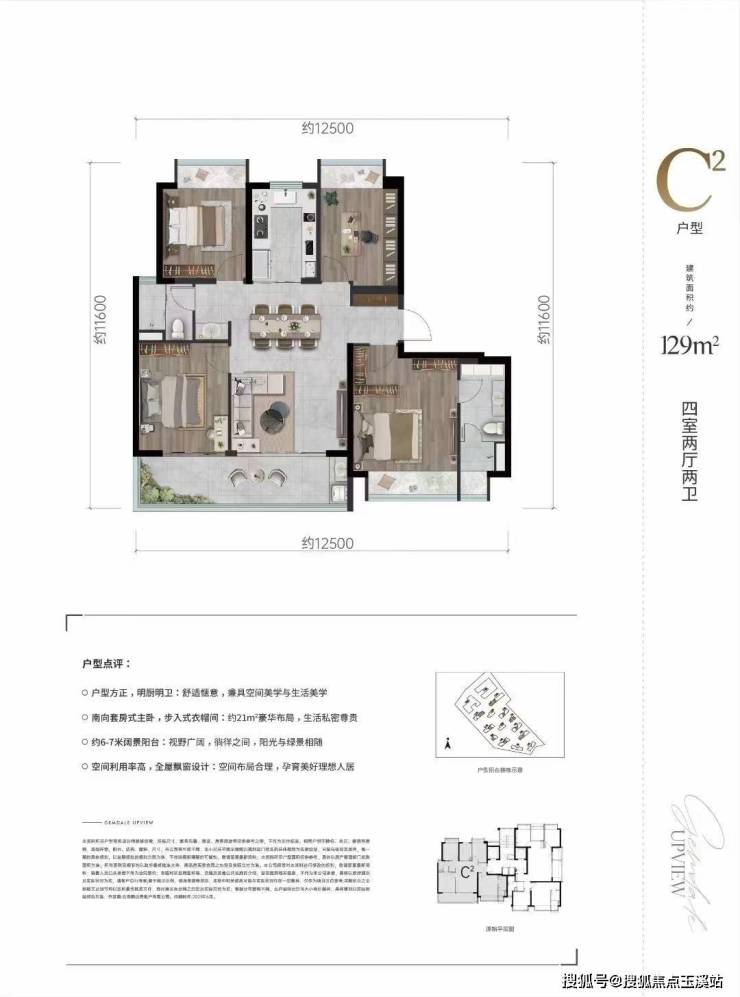 3、产品:2梯2户,电梯独立入户,115-143平米户型,均为大三房以及大四房产品;