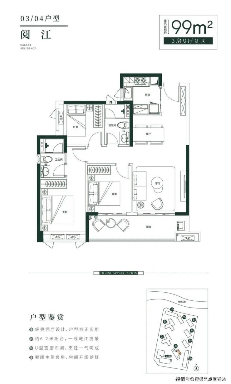 经典竖厅设计,户型方正实用;约6.2米阳台,一线瞰江揽景;U型宽厨布局,烹饪一气呵成;奢阔主卧套房,空间开阔朗舒。