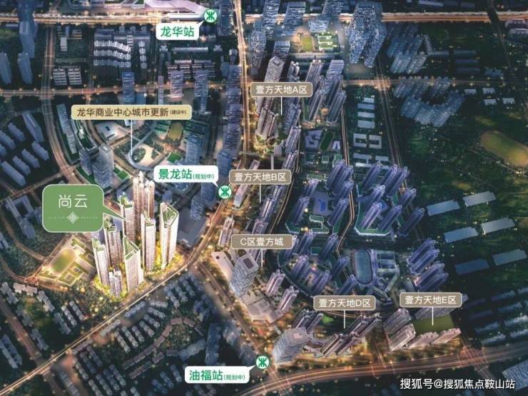 鸿荣源尚云2区项目占位龙华超级商圈核芯,壹方城旁,紧邻9年一贯制学校,以“城无界,自从容”为理念,打造集住宅、办公、商业于一体的高品质住区,位于龙华超级商圈壹方天地旁,距离地铁4号线龙华站约1.1公里,步行约15分钟,区域配套设施完善