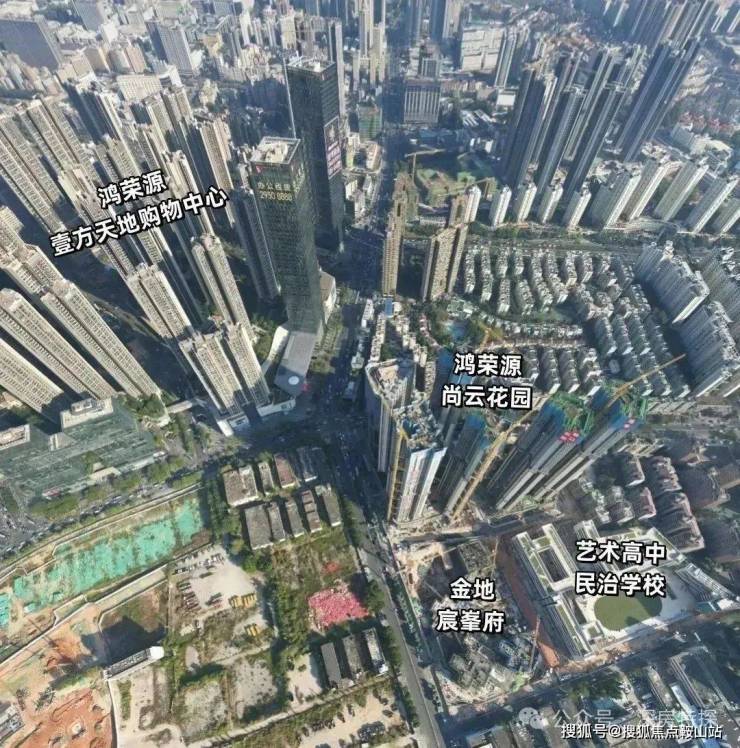 鸿荣源尚云花园,位于龙华区民治街道工业路与龙华人民路交汇处西南侧,4号地铁线“龙华站”距离约1.2公里,项目东北侧是鸿荣源壹城中心,东侧是丰润花园,西侧金地宸峯府、深圳艺术高中民治学校,南侧挨着玉华花园。