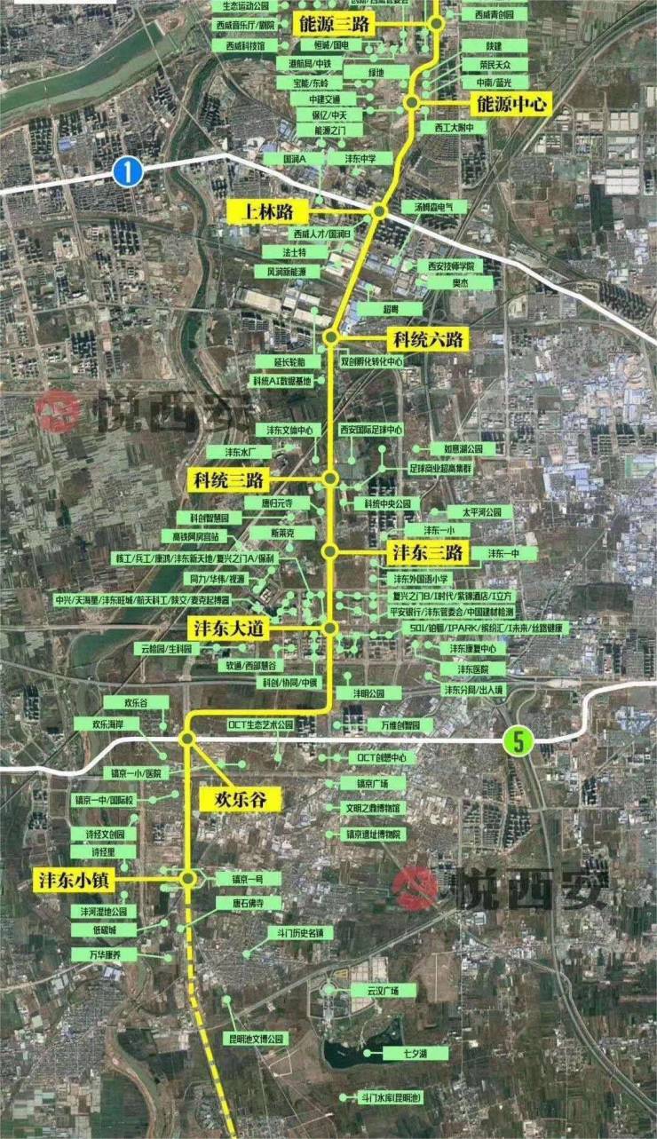地铁:距项目西侧约800米地铁16号线沣东大道站,目前在建中,2023年一期工程通车。向南一站路在华侨城欢乐谷站可换成地铁5号线,全程43公里,可在南稍门站换乘2号线,青龙寺站换乘3号线,李家村站换乘4号线,5号线于今年9月份试运行;