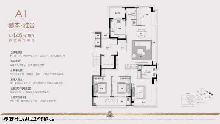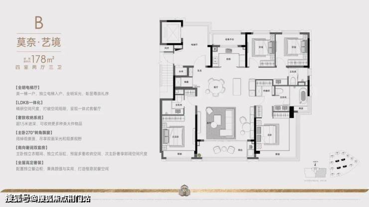 这款户型,则站在追求品质改善人群的角度,做出了四房三卫双主套设计。