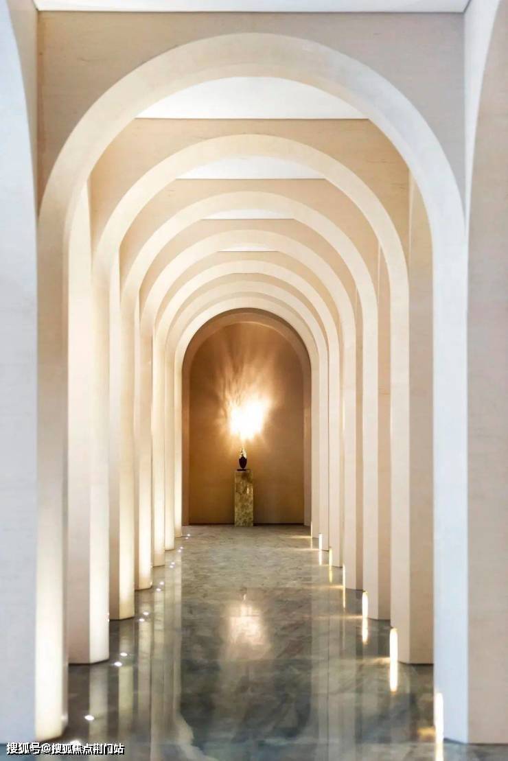 四面拱形廊柱源自巴黎卢浮宫造型,运用世界级曲线工艺,置身其中艺术气息扑面而来。