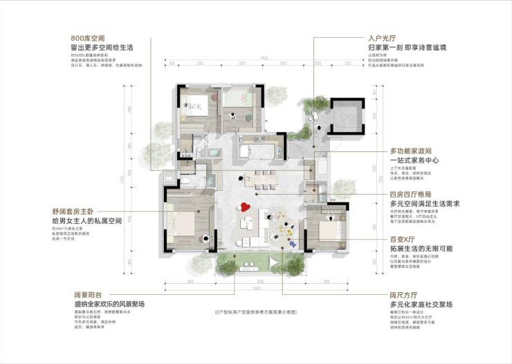从人类宜居必备要素出发,凝练城市资源、产业价值、公园配套、教育资源、社区生活、舒居规划六大宜居内容,将居住、工作、休闲、教育、娱乐等生活功能紧密衔接,构筑城市园环住区。