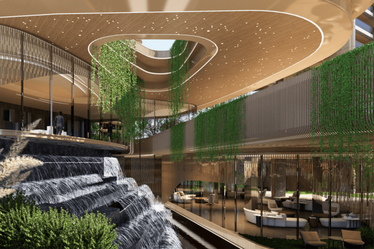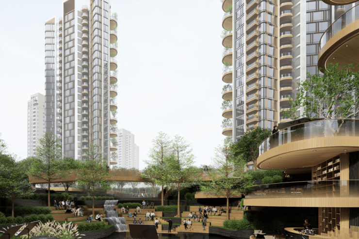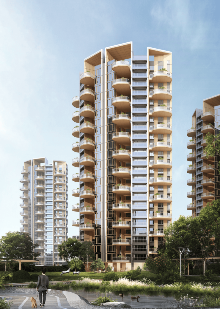 相较于目前已经问世的空中花园项目使用底部斜梁支撑整个阳台,澐璟采用了悬挑梁的形式进行结构优化,解决了大阳台的承重问题,使得建筑整体立面更为美观,保证了空中花园阳台的生活交互性,从而实现无界的绿色森系人居体验。