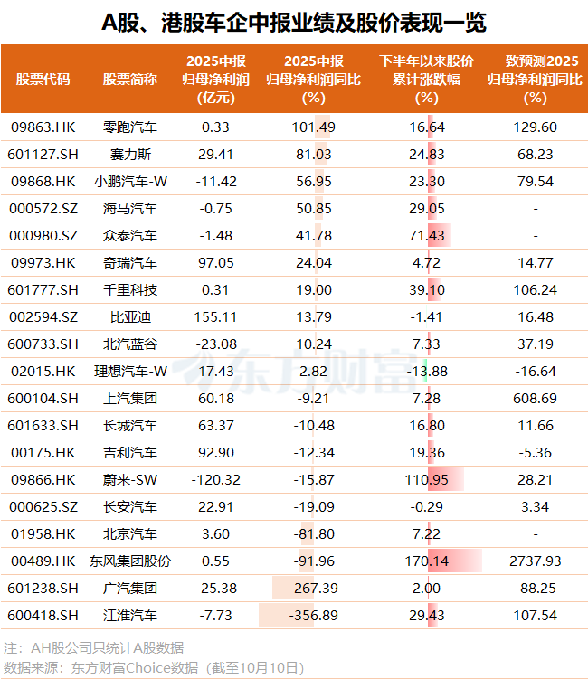 从累计销量上看,上汽集团与比亚迪之间依然胶着,难分上下。