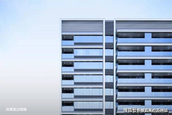 三面铝板立面,大面积玻璃运用,玻璃面连续长度最大约9米;住宅顶部“悬浮云端”格栅塔冠设计,闪耀建筑的第五立面。