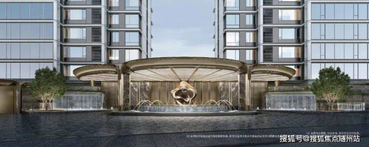 告别传统社区大门,打造约150米超长门街,近60米大门,独创馥香花瓣高定造型,古奇黑奢石与水景叠瀑辉映,昭显尊崇归家仪式感。