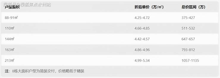 毛坯现房:88㎡三房单价约 3.5 万 /㎡,总价 308 万起;110㎡四房单价约 3.8 万 /㎡,总价 418 万起