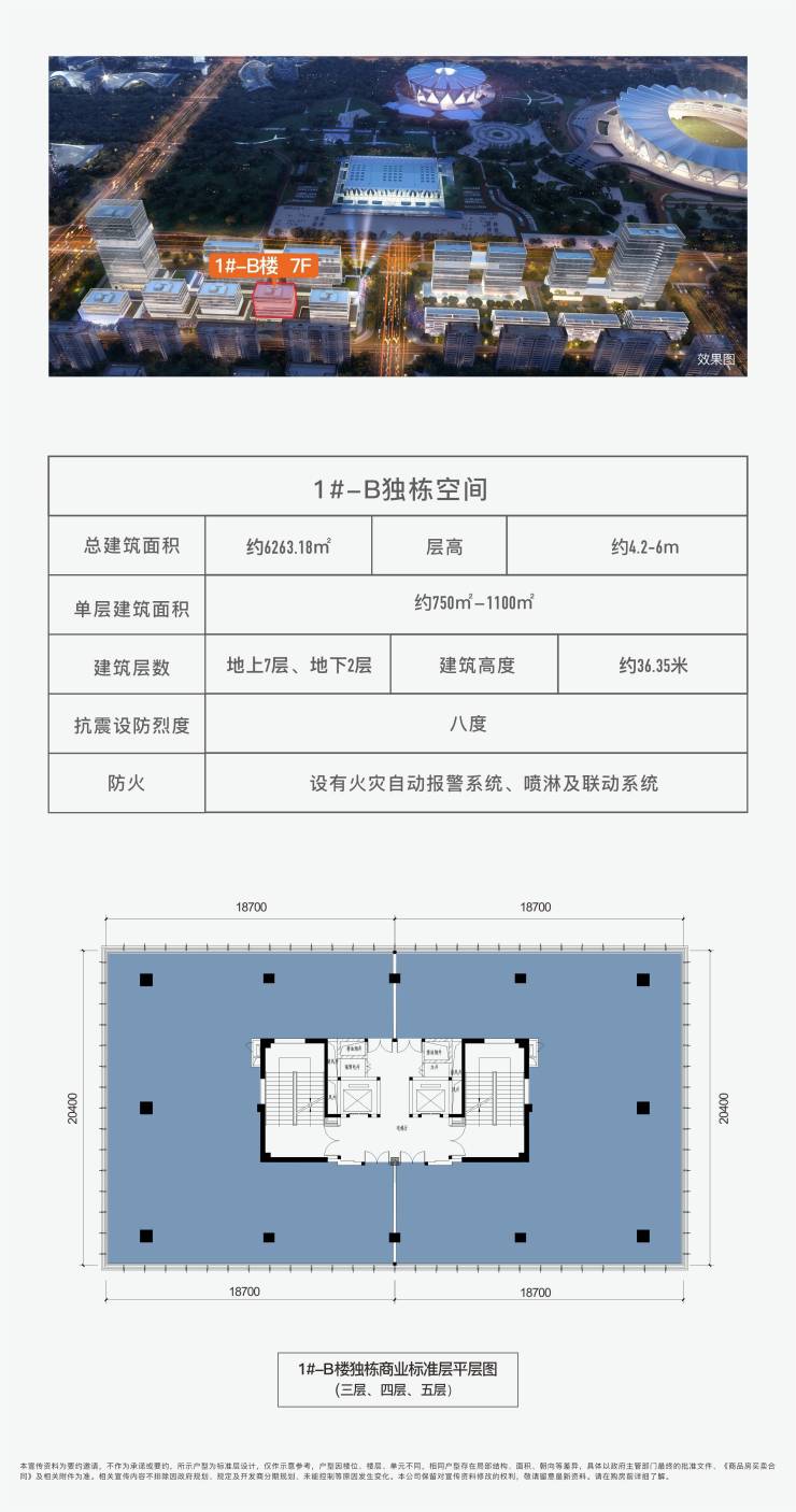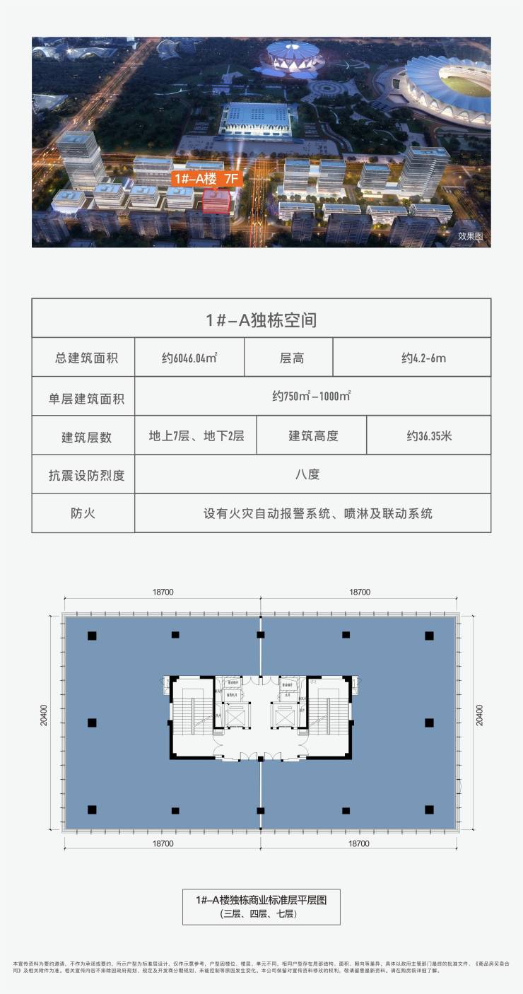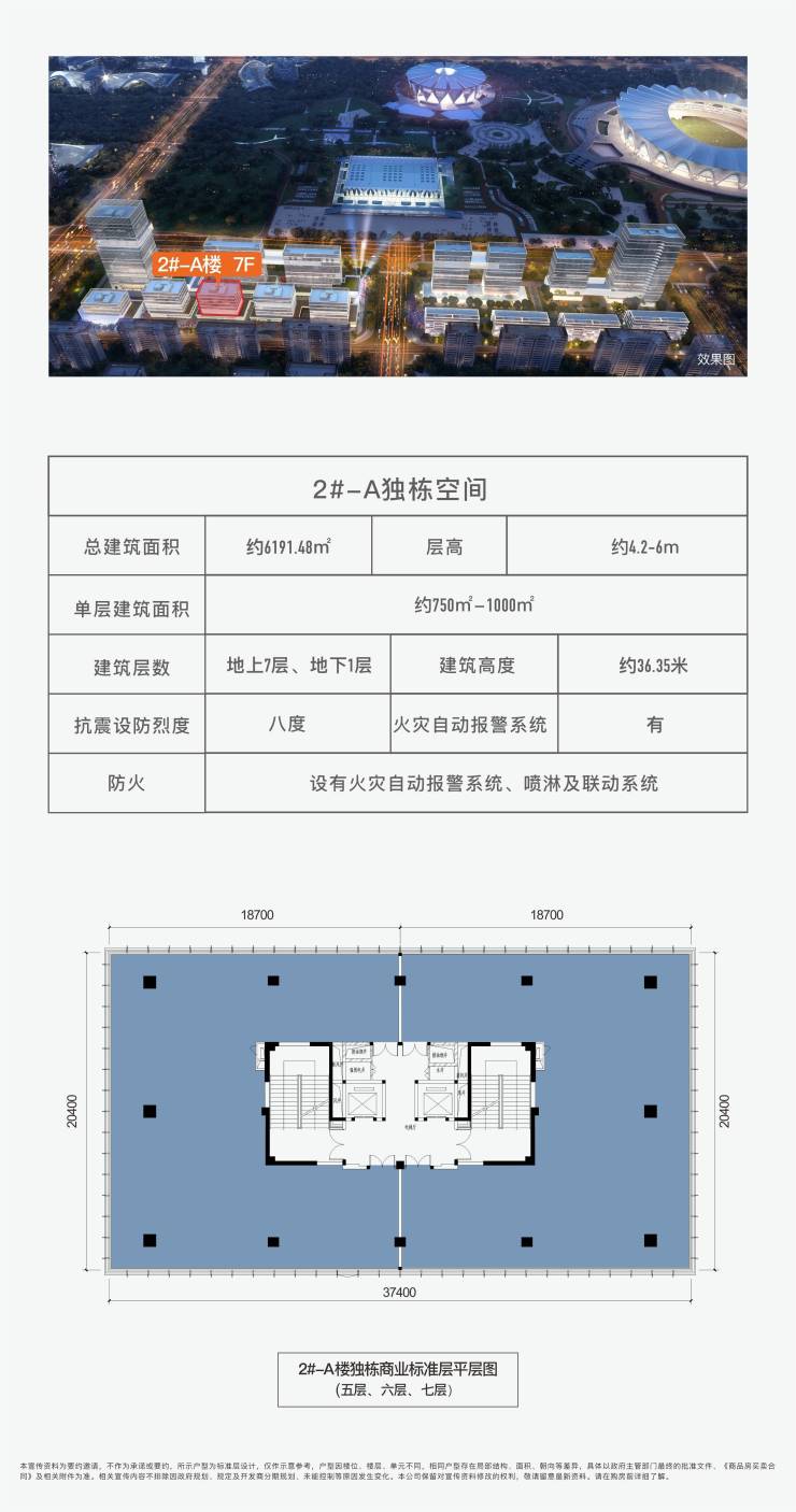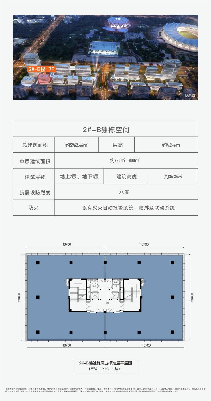 总建面约2.3万方,5/7F,主力户型建面约360-430㎡独栋,产品定位“一企一栋,一层一域”,意打造奥体首站娱乐性消费打卡地。
