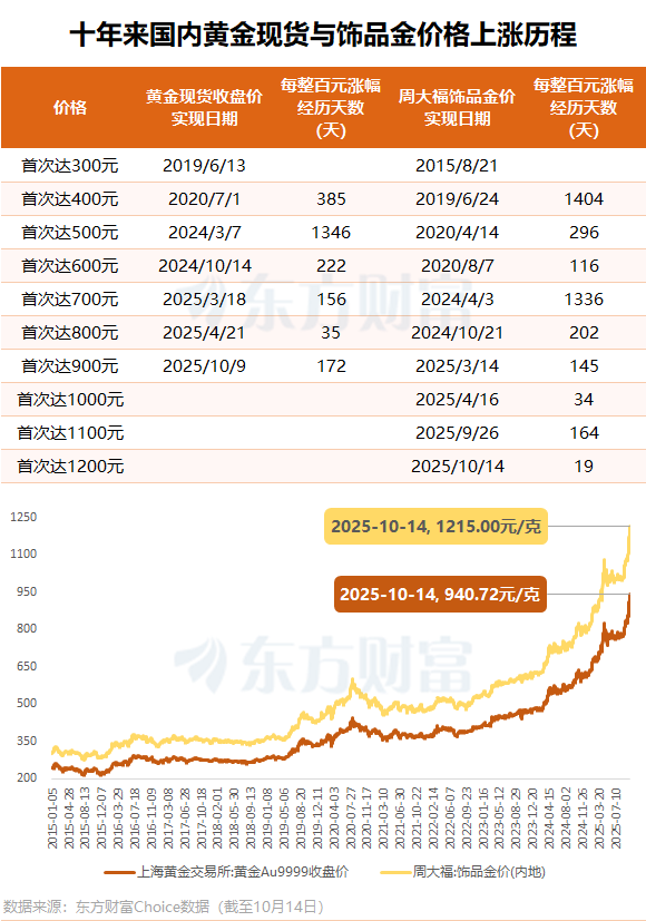 公开信息显示,2025年初,上述珠宝品牌足金饰品价格围绕800元/克波动。截至发稿前,年内足金饰品价格每克上涨约400元。