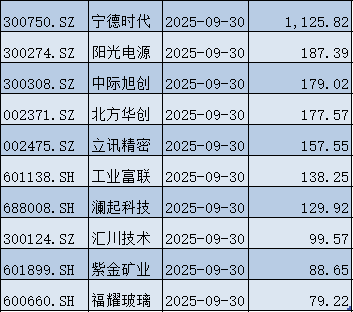 北向资金三季度持仓曝光:宁德市值第一 京东方A获增持股数最多