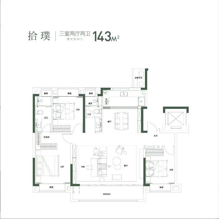 125m²的户型南北通透,三个卧室中朝南的有2个,走道布局合理,整体设计较为实用。另外两个户型为140m²和143m²的大面积户型,同样南北通透,客厅区域可划分出一个书房,公卫朝南通风良好,厨房面积较宽敞。