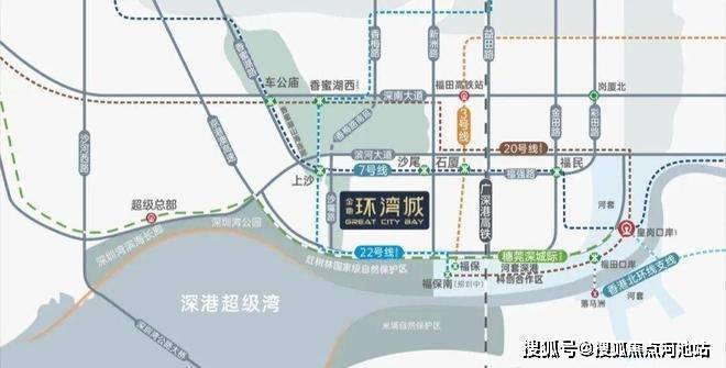 项目无缝衔接串联7号线上沙站-沙尾站,22号线双地铁上沙站 (规划中,双线交汇),1站直达香蜜湖/河套/车公庙。