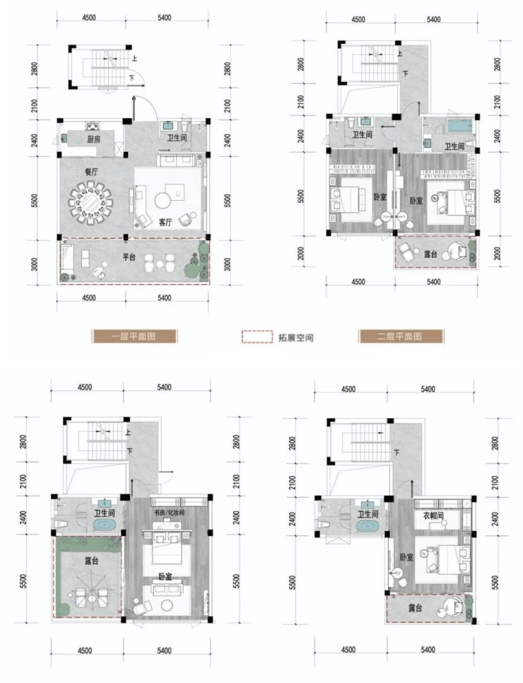 在售的 145㎡、212㎡、317㎡户型,无论是三居还是四居,都做到了客厅与卧室分区明确,动线合理,减少日常生活中的相互干扰。
