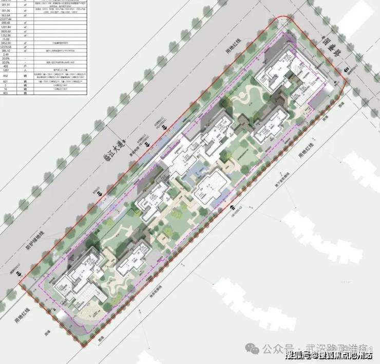 项目共规划了4栋30-31层的高层住宅、2栋44层的超高层住宅和部分社区底商。总用地面积2.58万方,总建筑面积约8.97万方,容积率2.49,户数402户,车位配比1∶1.07。
