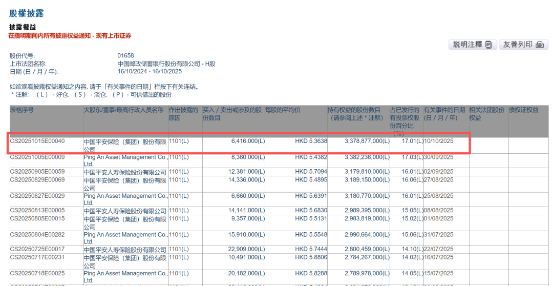 具体来看,中国平安及旗下子公司平安人寿增持招商银行H股约299万股,斥资约1.39亿港元,增持后持股比例占该行H股比例约17%;增持邮储银行H股约642万股,斥资约3441万港元,增持后持股比例占该行H股比例约17.01%。