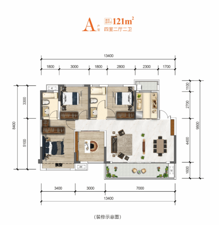 ✨建筑面积约121㎡ |四室两厅两卫✨楼下花园|超大景观花园,坐拥城市静谧,尽享人生百态✨归家仪式|1T2,入户玄关兼具归家仪式感与功能性✨豪套卧室|豪华套卧设计,满足主人便捷居家所需✨环绕赏景|突破传统边界,无缝对接近7米长宽景阳台,最大限度保证采光和观景效果✨光影起居|全明卫套房