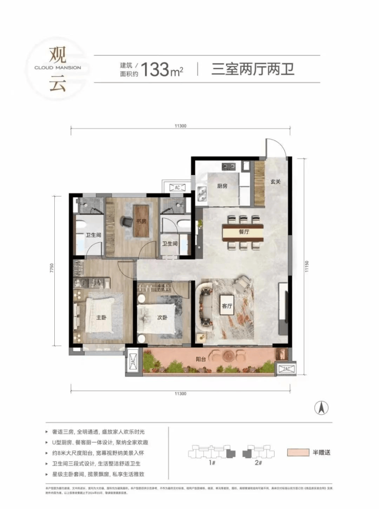 匠心打磨建面约110㎡、133㎡两大明星户型,契合不同家庭结构的居住需求。南北通透格局,双向对流空间,保证生活的奢适性。大尺度窗墙比设计,南向双阳台设计,向外俯察广袤风景,向内铺泻温暖光境。