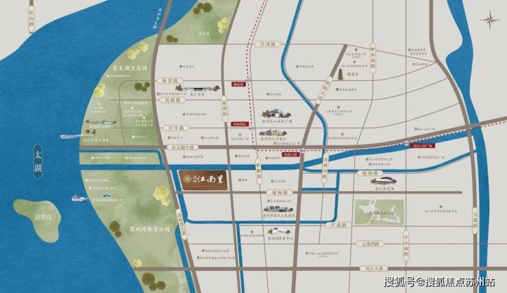 项目坐落在苏州湾豪宅区,双水岸环绕,与占地约1460亩的苏州湾体育公园仅一路之隔。生活圈内自然、交通、教育、商业等配套齐全,既能私享太湖钟灵毓秀,又能同频城市发展脉搏,拥揽华贵菁英圈层。