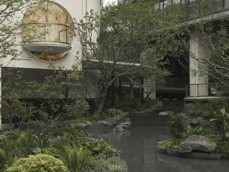 项目倾注心力打造景观园林艺术,秉持“玉湖承韵”的设计理念,运用同心球技艺,巧妙地将姑苏风光融入现代居住环境,形成连贯的归家路径,步移景异,美不胜收。