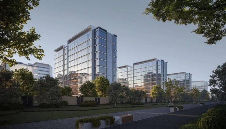 建筑美学立面: 采用大面玻璃、铝板、绿如蓝陶板打造经典三段式立面,南立面窗墙比约0.48,苏州罕有的南北同标配置,成就通透细腻的视觉地标。