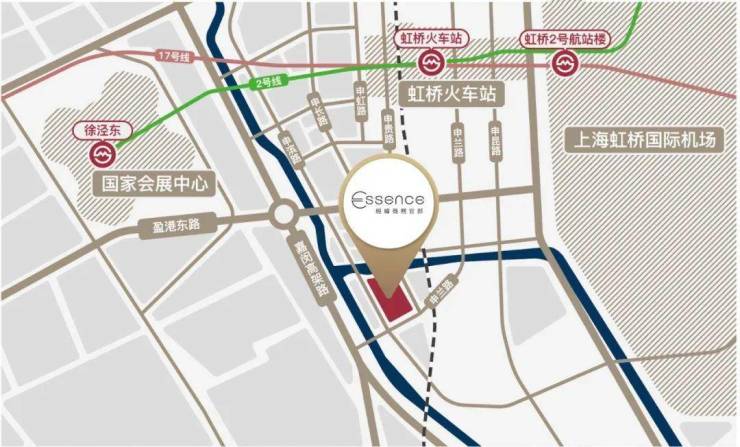 位置:虹桥商务区南片区,邻近国家会展中心、虹桥交通枢纽,地铁17号线虹桥火车站站可换乘2号线、10号线,嘉闵线(在建)、机场联络线(在建)直达静安寺、陆家嘴等核心区域。