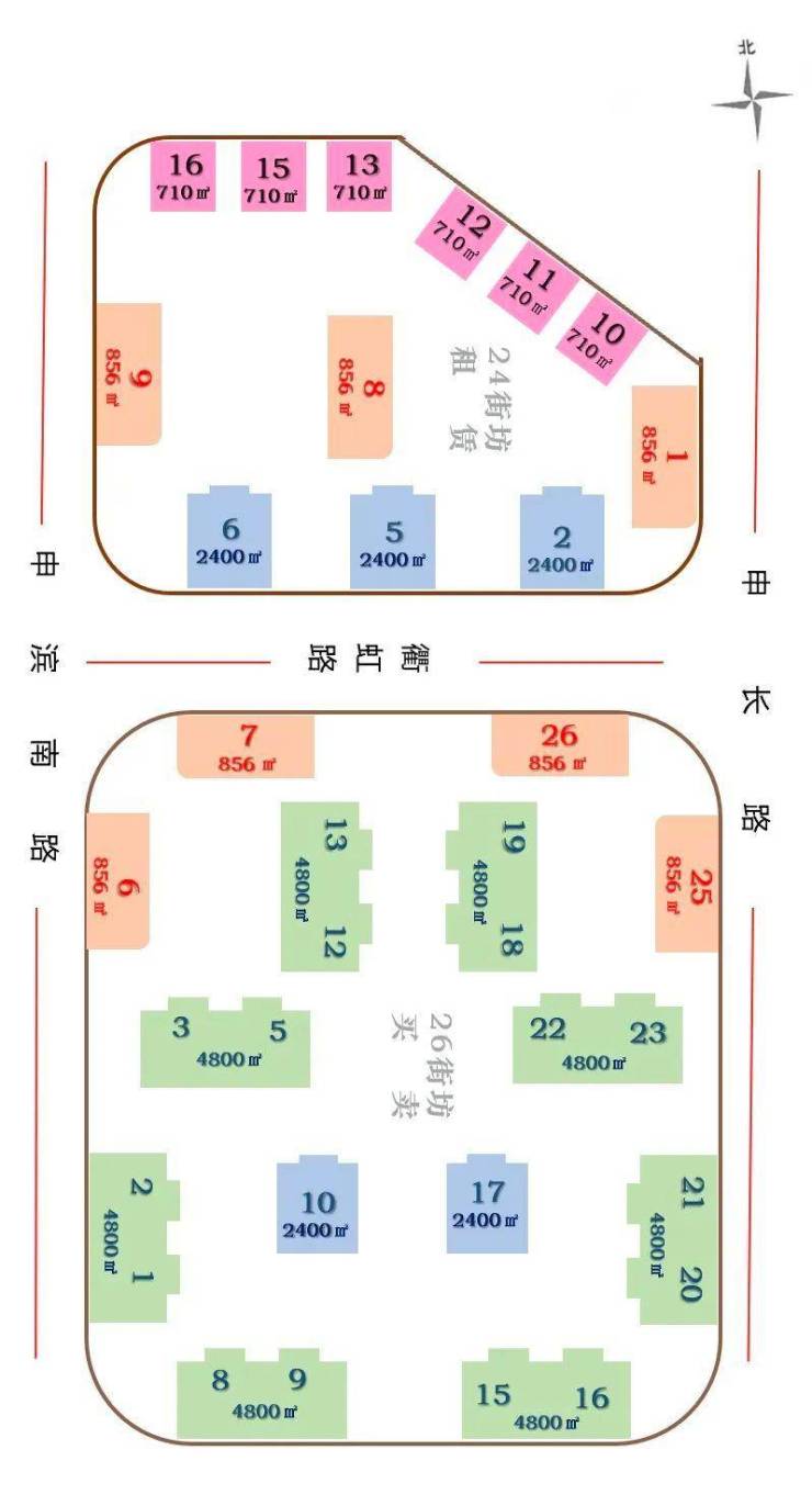 项目分为南区和北区,北区为一期,南区为二期。一期北区共有12栋,单栋面积710~2400㎡已经交付使用,以出租为主;二期南区共有14栋,单栋面积约为856~4800㎡,以出售为主。