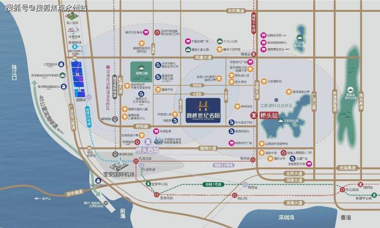 位于宝安区福海街道,毗邻宝安大道,富桥大道、永昌路和桥塘路的围合地块内。项目周边三轨环绕,且均能直通深圳市中心区域,跨区域出行的优势突显。