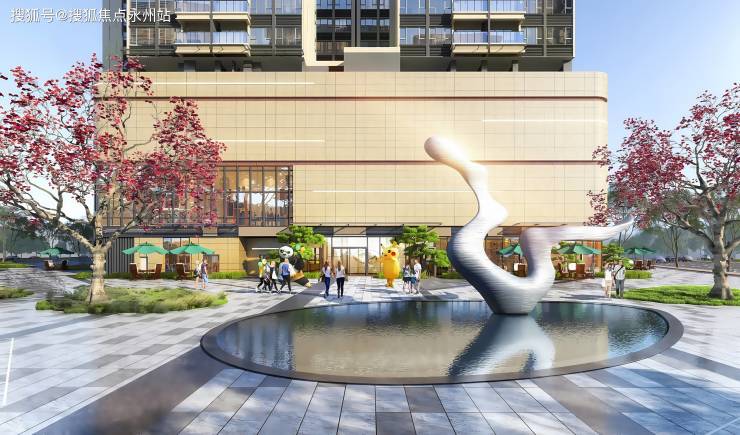 四重水景:提取凤凰山的形态纹理将自然山林元素与现代都市生活有机结合,在有限的面积之中,还原无限的自然山水之趣。
