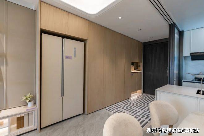 首先,S墙的设计,为了让小户型也能容纳双开门的大冰箱。