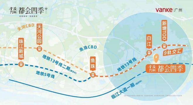 金茂万科都会四季位于广州增城区新塘板块东洲大道(临近地铁白江站(实际距离约1.3km)),项目总体量接近70万㎡,集高端住宅、商业及教育配套为一体,以金茂与万科成熟的城市运营能力,强大品牌号召力,必将再造一座传奇大城!