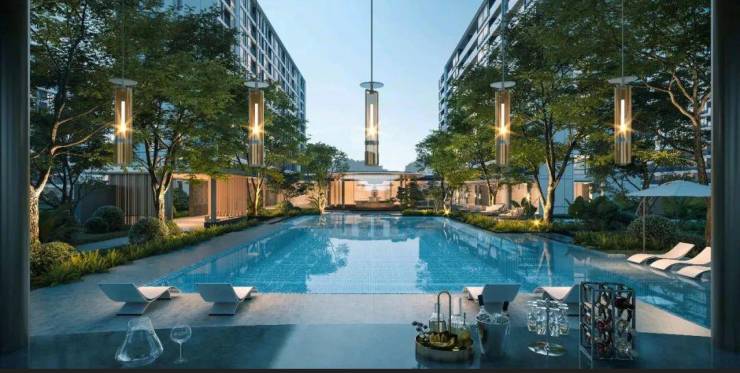 “中轴对称”美学,闪耀着绿城人文的智慧光芒。项目景观中轴作为核心部分,精心设计五重归家体系——礼仪港湾-热带缦岛-林屿会客-漂浮戏水-入户花园,通过层层递进的动线设计,营造连贯、舒适、温馨、尊贵的体验。