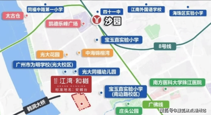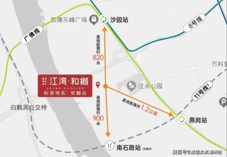 项目交通配套:项目距离地铁8号线沙园站约800米。距离广佛线燕岗地铁站约1.2公里。距离首条环城线11号线南石头站约900米。自驾有在建的环岛路串联海珠9纵9横路网。
