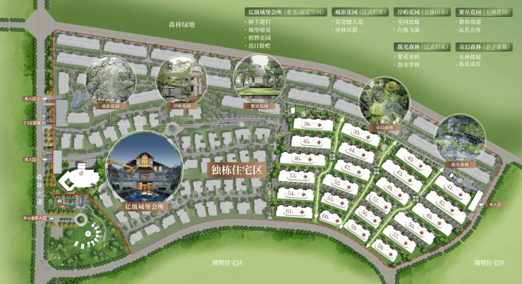 2. 53栋独栋别墅,匠心打造出10种不同建筑风格,3种建筑风格,4种外立面颜色!每一套都独一无二,每一栋都是稀世珍藏的作品!
