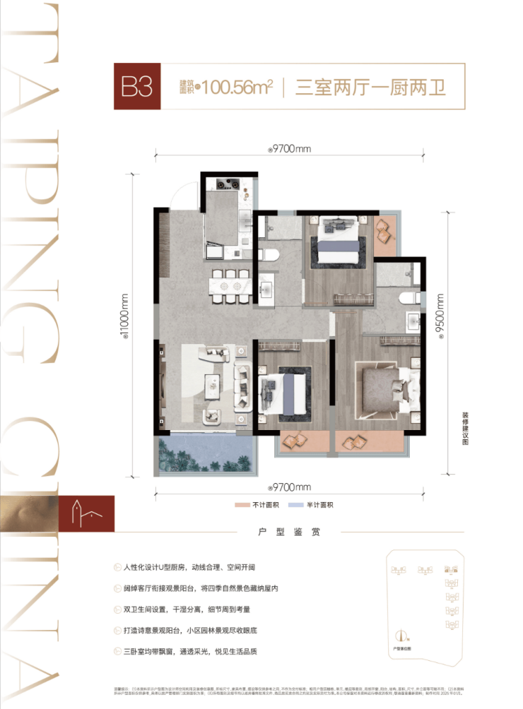 1、建筑面积86-100㎡精装瞰景高层/建筑面积115-135㎡精装板式洋房