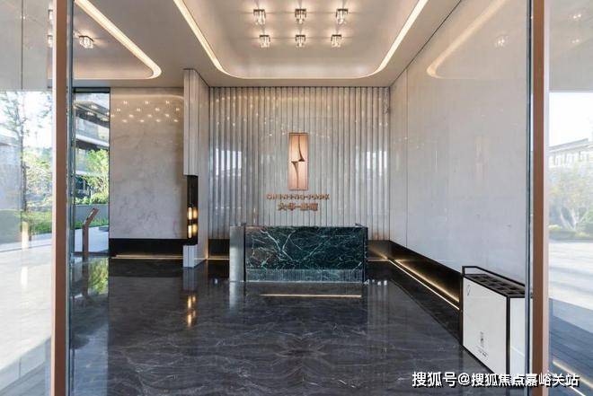 地上大堂,上海大华星曜官方售楼处电话:400-8787-740√√√【已认证】单元门厅的雨棚采用香槟金的弧面铝板、立面干挂爱马仕灰蜂窝岩板,岩板上嵌入专属楼栋号,单元门两侧的弧线段金属采用定制模具加工。